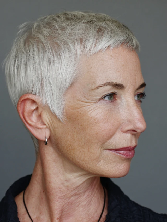 Modern pixie cuts for women over 60 focus on clean structure, soft texture, and effortless movement. The goal is not just shorter hair, but a refined shape that enhances natural features while remaining easy to maintain. Today’s pixie is less rigid and more adaptable, blending precision cutting with a relaxed, wearable finish.