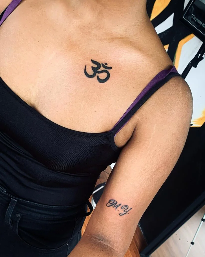 The chest area signifies strength, openness, and truth, making this tattoo a constant reminder to live in alignment with inner peace. For women, this positioning makes the Om tattoo not just an ornament but a soulful expression of belief, grounding energy close to the heart.