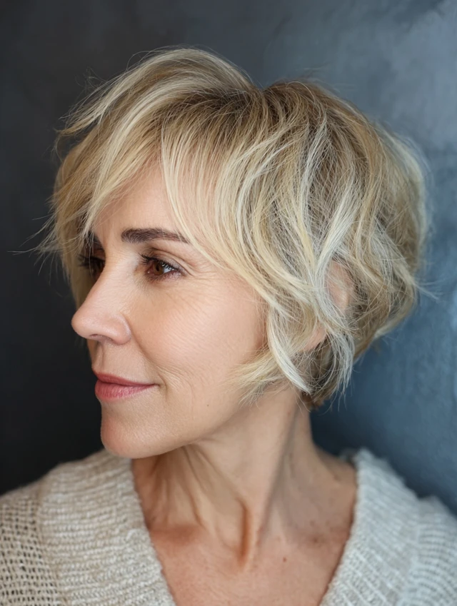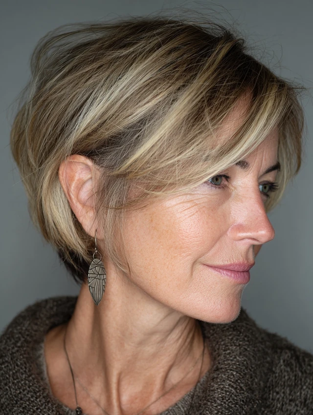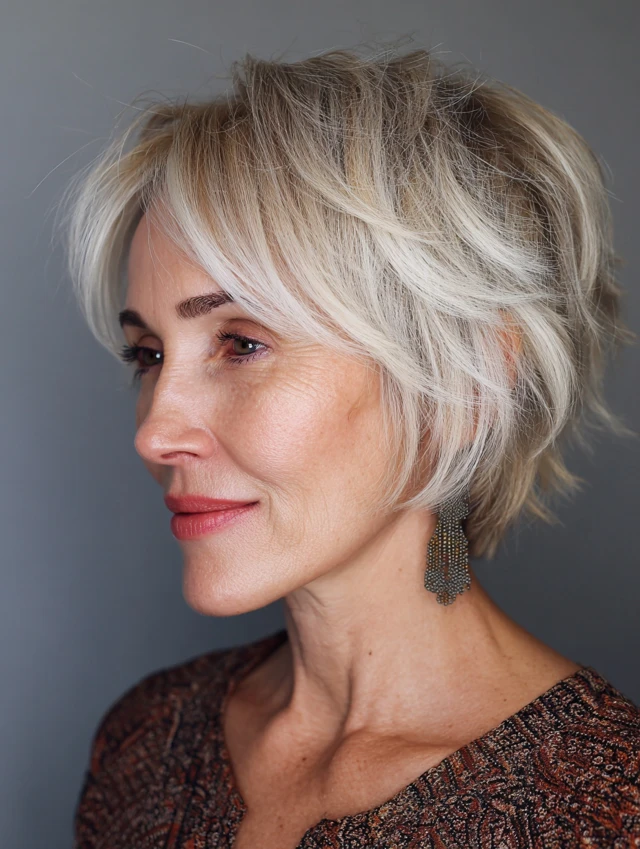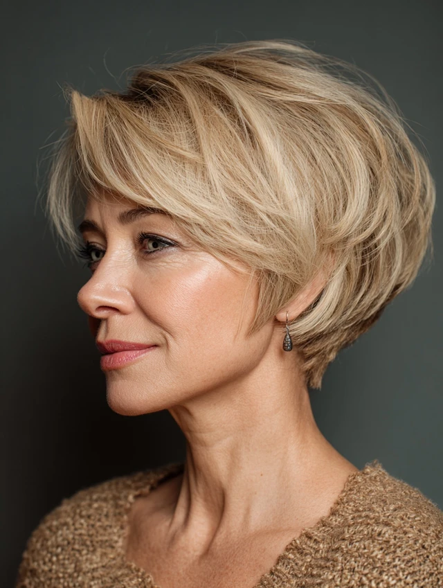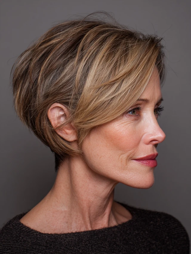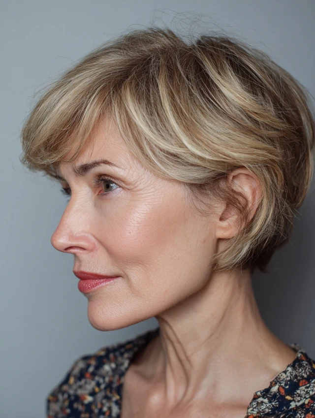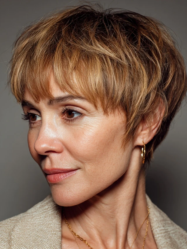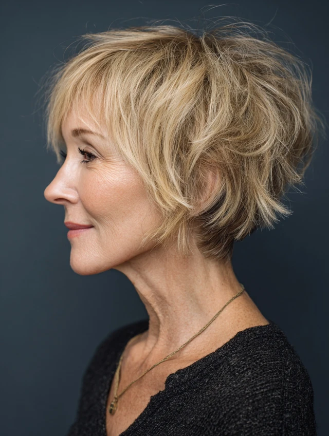 Pixie bob haircuts for thin hair over 50 offer a smart, flattering way to achieve volume and movement. The combination of short and longer layers creates a fuller, more dynamic look.