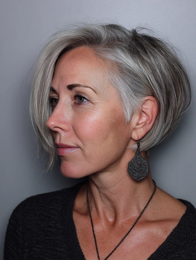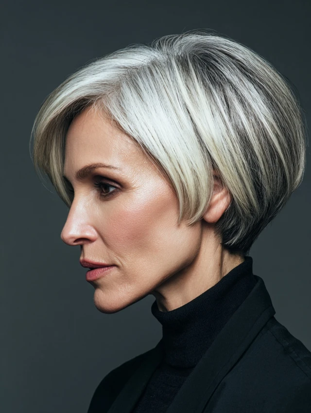 This contrast creates natural lift and a clean silhouette. It’s a polished option that holds its shape well and works beautifully for fine hair needing structure.
