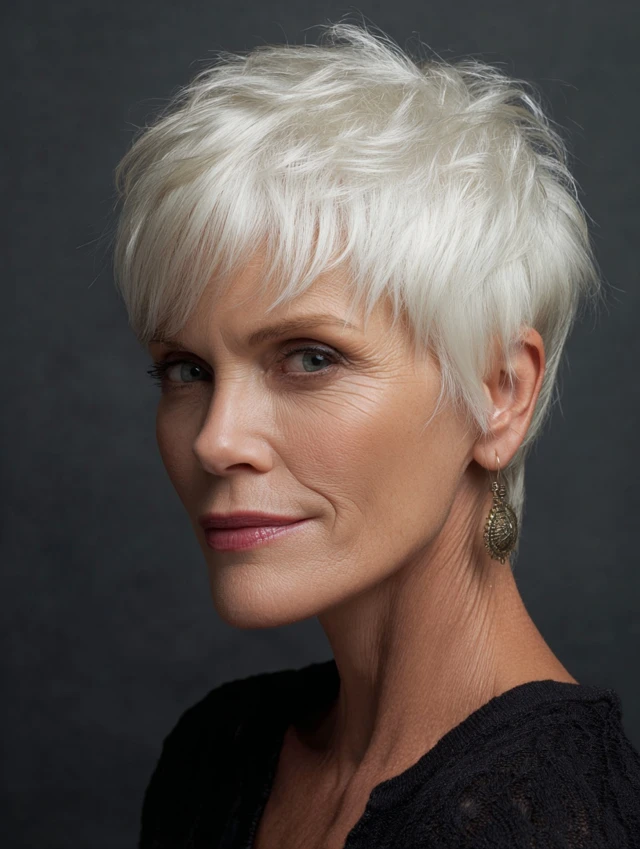 Pixie cuts for thick hair over 50 are about control, weight distribution, and intentional shaping. While thick hair offers natural volume, it can easily become bulky or difficult to manage without the right cut. A well-designed pixie removes excess weight while keeping enough structure to maintain fullness and movement.