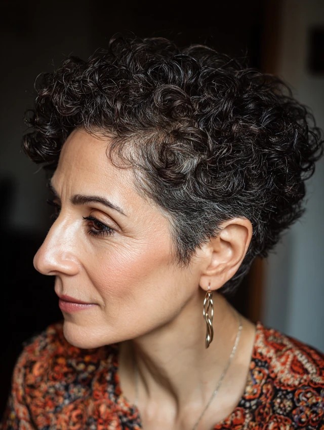 A curly pixie for thick hair works with natural curls while reducing bulk through layering. The curls add volume in a controlled way.