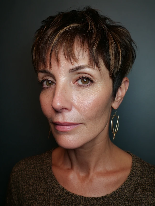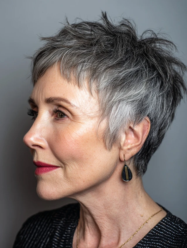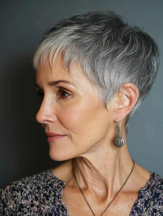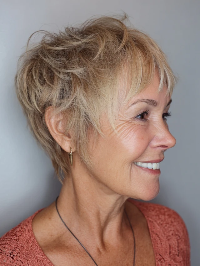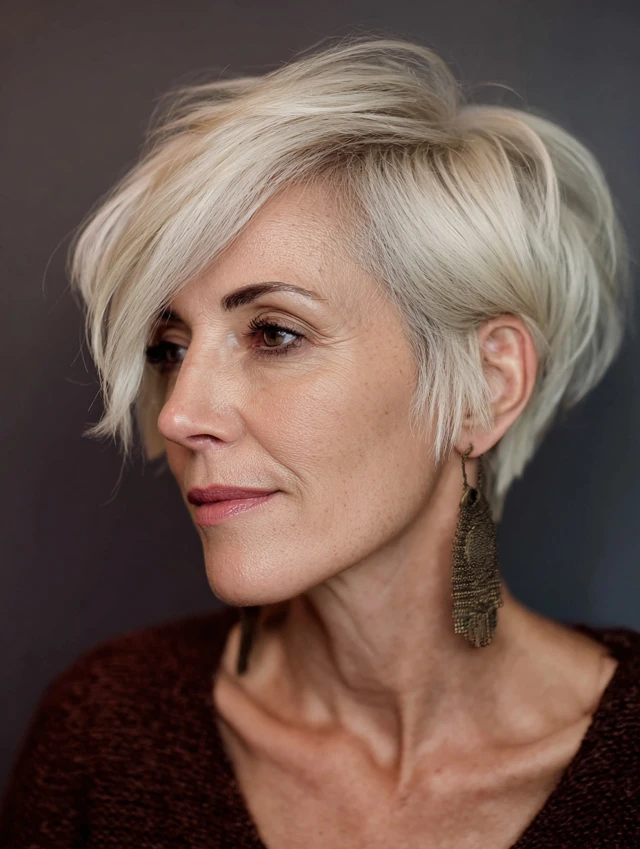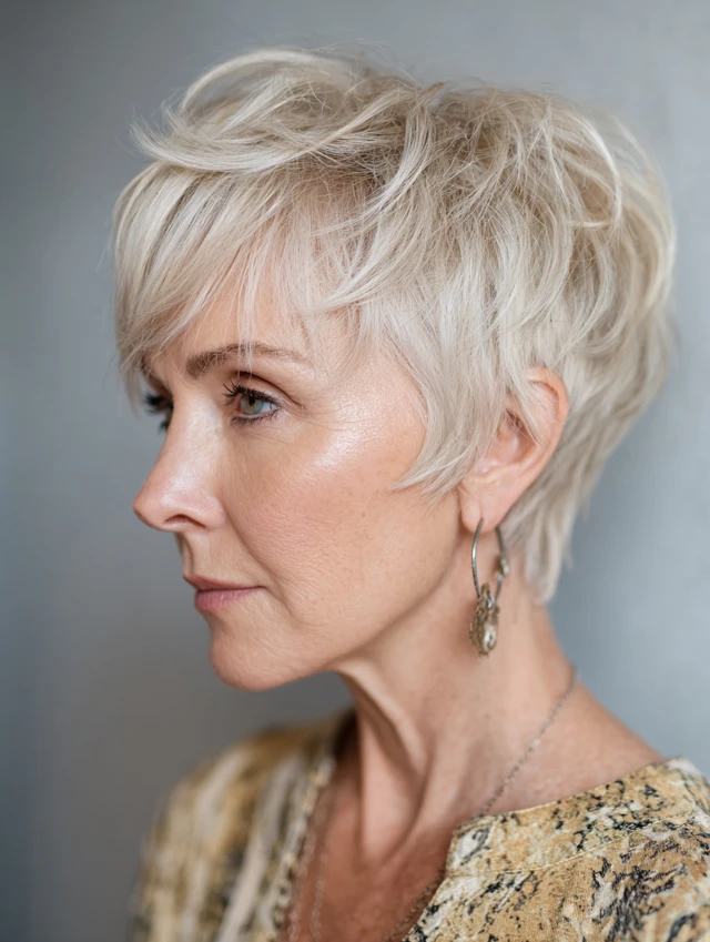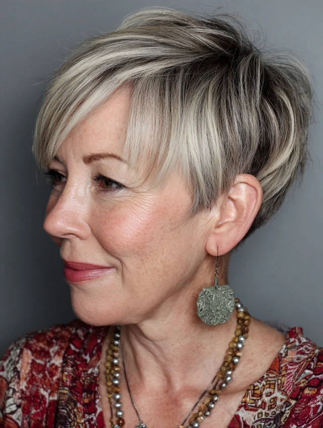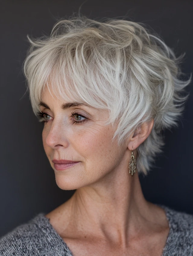Pixie cuts with bangs for women over 50 offer a modern and flattering way to enhance short hair. The addition of bangs brings softness, dimension, and versatility.