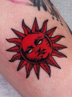 It’s a bold, playful design that blends vibrancy with cosmic allure. Perfect for women who want a tattoo that stands out, it symbolizes creativity, individuality, and a love for all things celestial while keeping a fun, modern aesthetic.