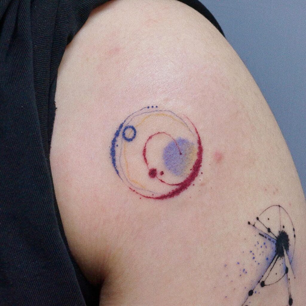 Such minimalist designs are versatile—easy to show or conceal—and radiate timeless elegance. It’s a refined choice for women who want a planetary tattoo that feels graceful, understated, and effortlessly stylish while still capturing cosmic wonder.