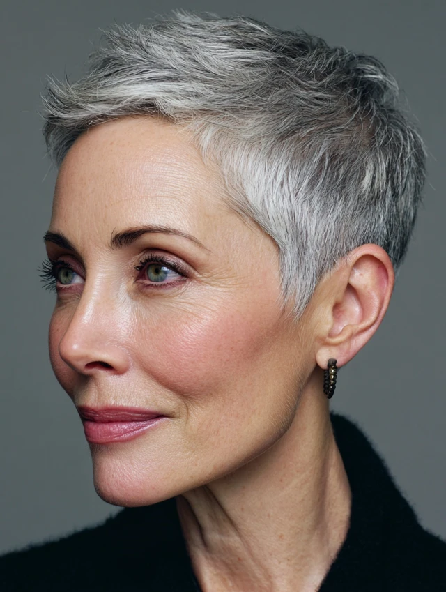 Short pixie cuts for fine hair over 50 are designed to create the illusion of fullness while keeping styling simple and efficient. Fine hair benefits from shorter lengths because they reduce weight, allowing the roots to lift naturally instead of falling flat. The right pixie cut uses strategic layering and shaping to build volume without making the hair look thin or sparse.
