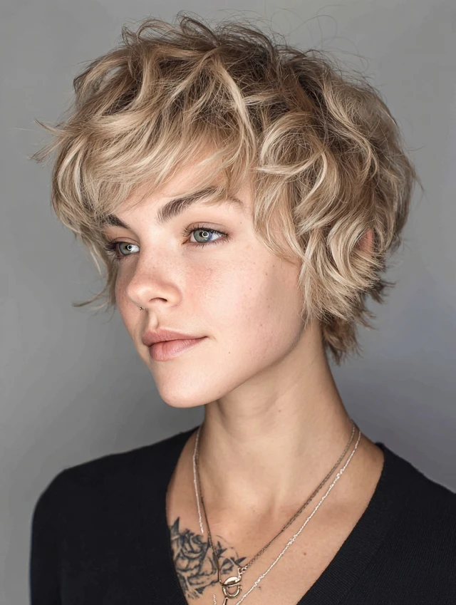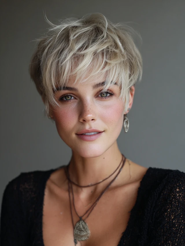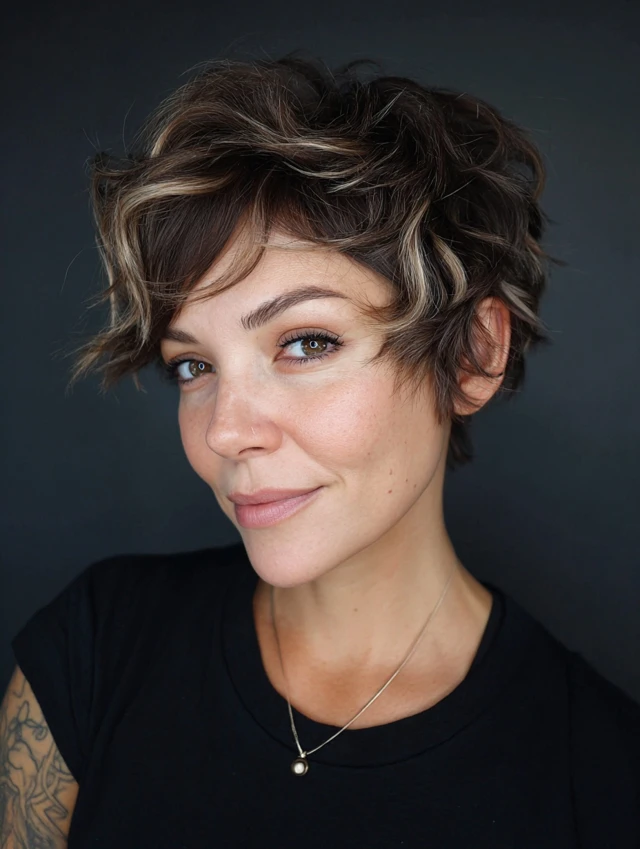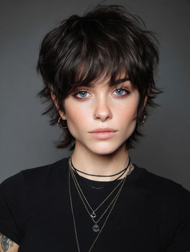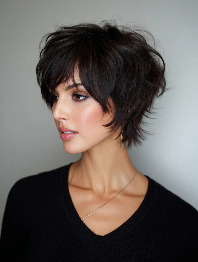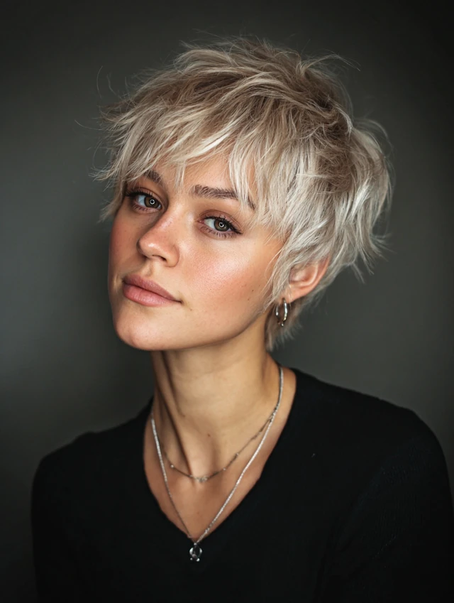 A pixie with shaggy layers gives a bold, edgy look while remaining feminine.