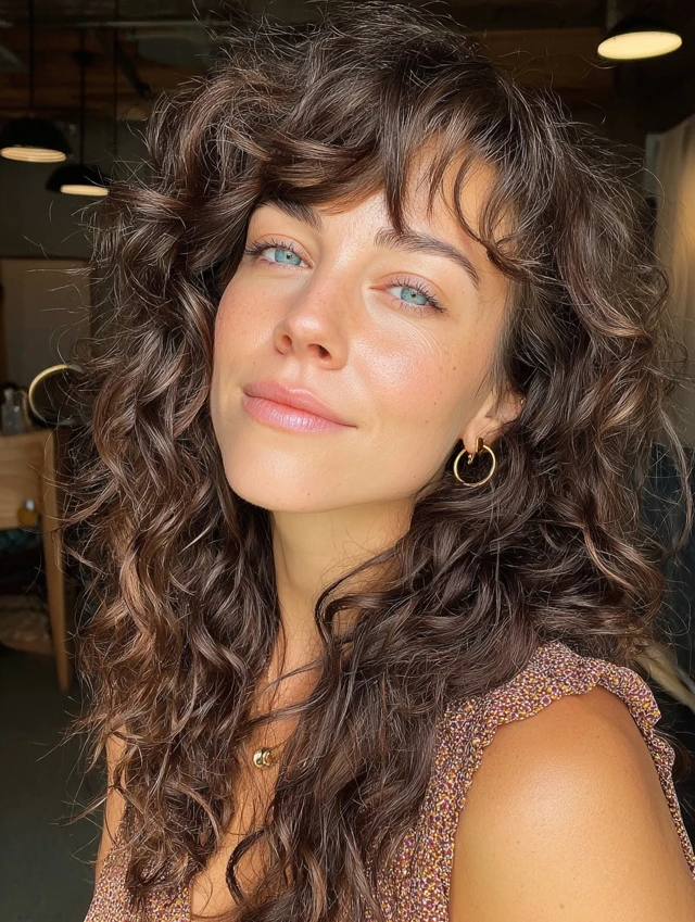 - Blend bangs with the rest of the curls for harmony.