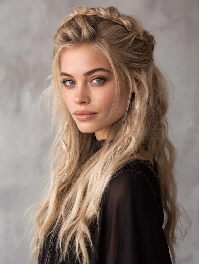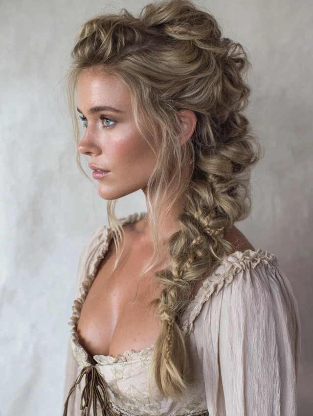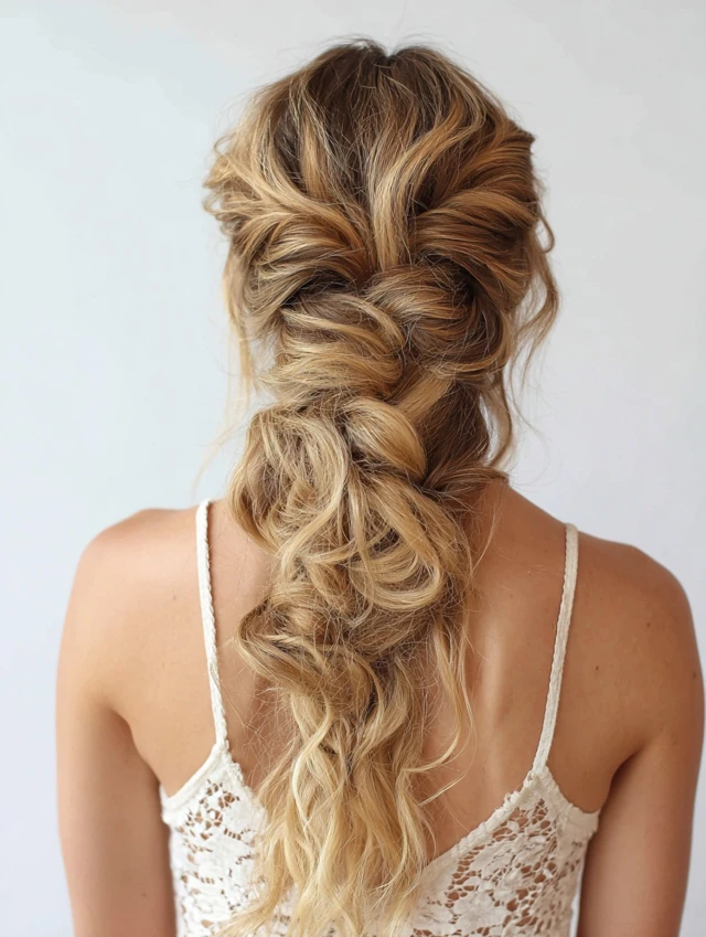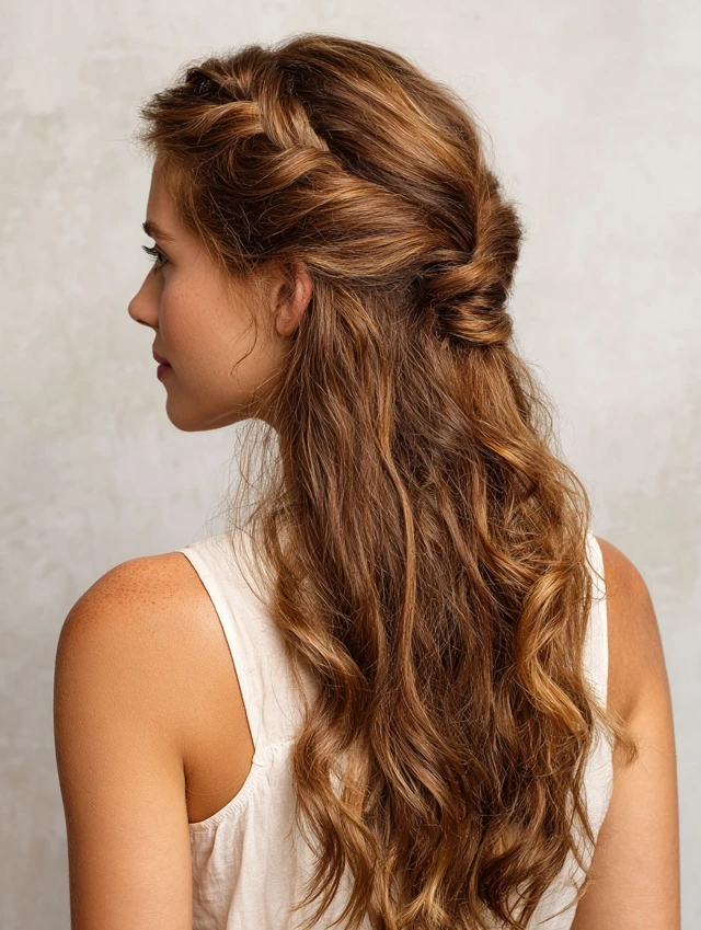 A loose, effortless braid on long hair creates softness and movement without requiring perfect technique.