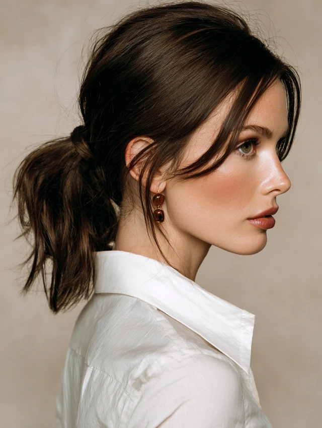A low ponytail is timeless and elegant. When done loosely, it looks effortlessly feminine.