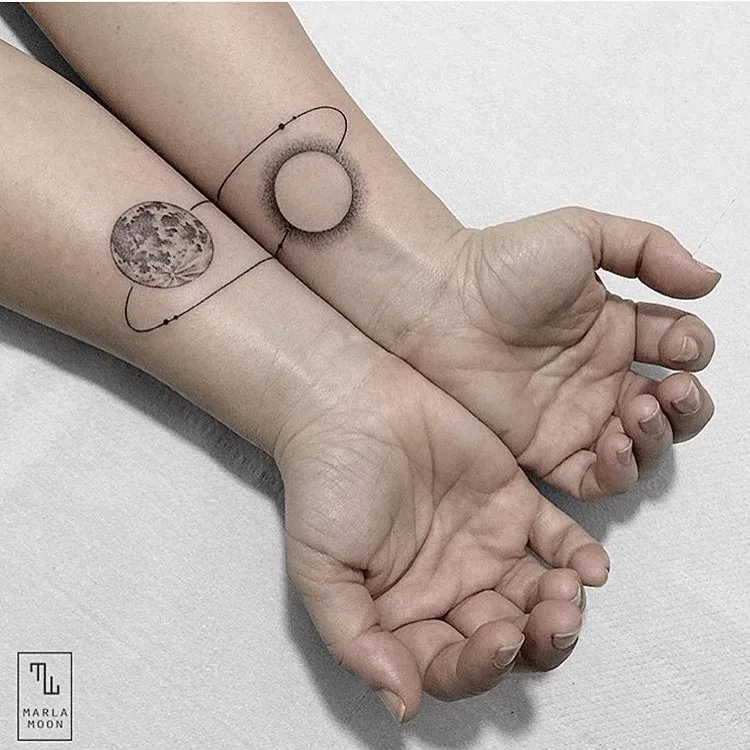 The soft shading around the sun paired with the textured moon adds depth and sophistication. For women, this tattoo can reflect transformation, duality, and the passage of time. It’s a poetic reminder that even in darkness, light remains close, always returning in cycles of renewal.