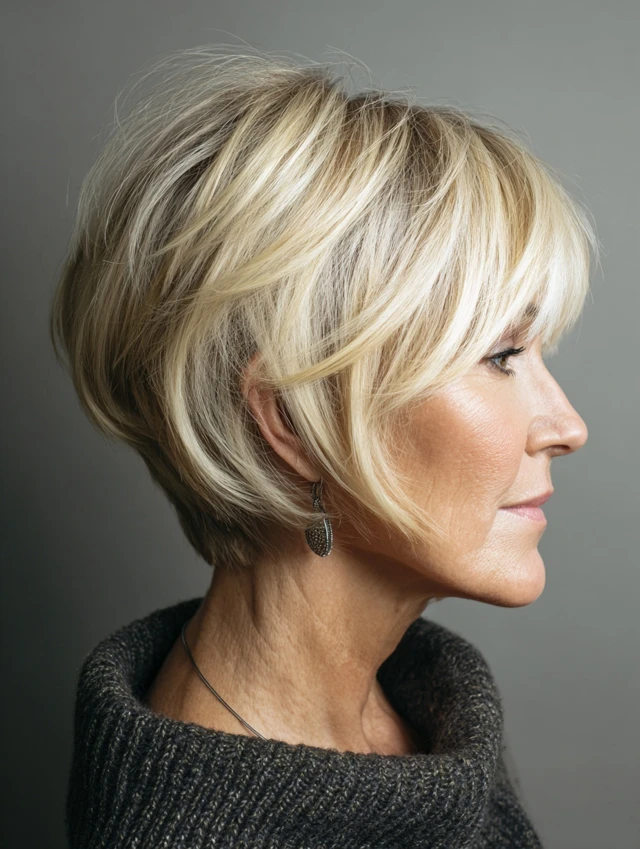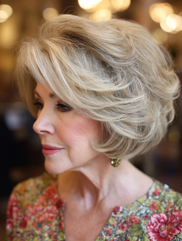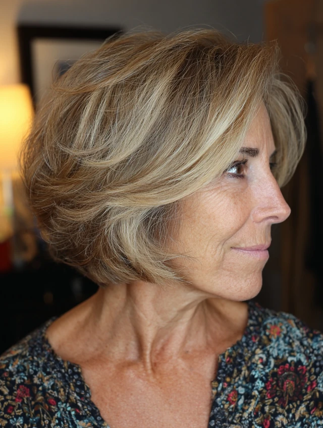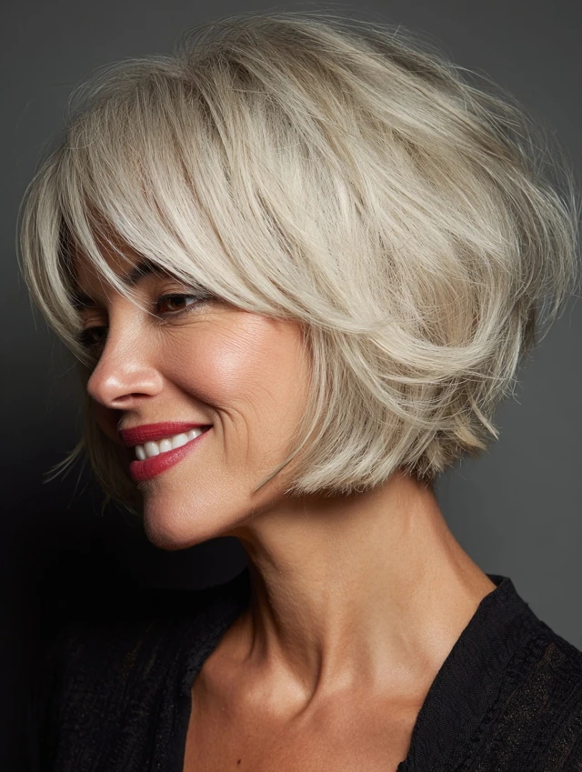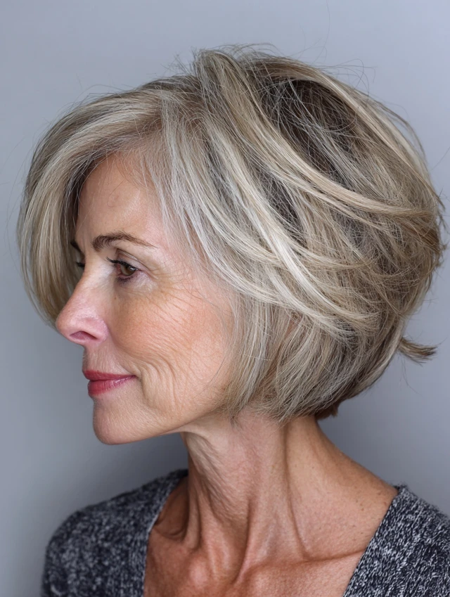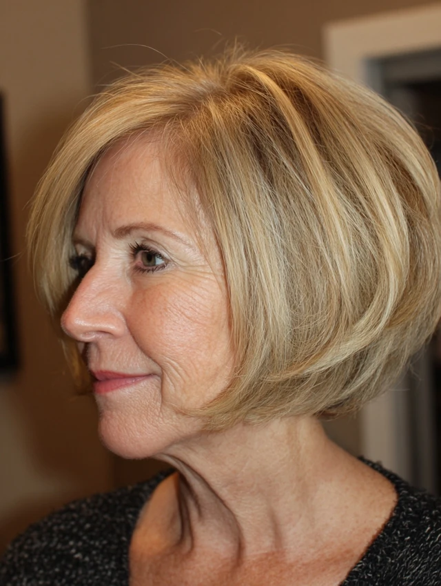 Stacked bob hairstyles for older women offer a structured yet modern way to achieve volume and movement. The layered back creates lift while the front adds softness.