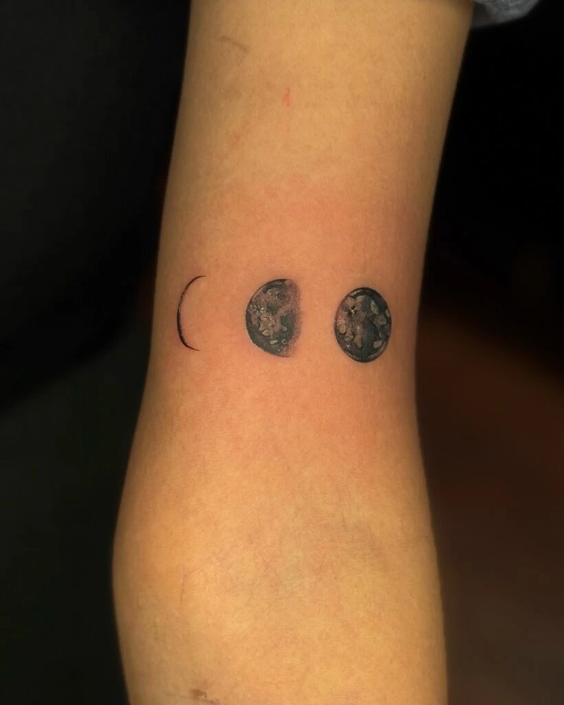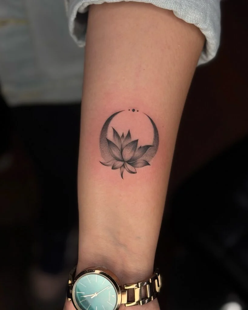 Symbolizing the passage of time, femininity, and change, this piece is a quiet but powerful reminder of life’s natural rhythm. Placed subtly on the back of the arm, it’s a poetic and peaceful design that speaks volumes in its softness. A celestial choice for introspective souls.