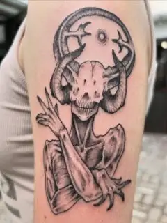 It’s an intense yet artistic expression of personal transformation and power. Ideal for those who love mythological motifs or are drawn to darker aesthetics, this tattoo is an eye-catching forearm piece that commands attention.