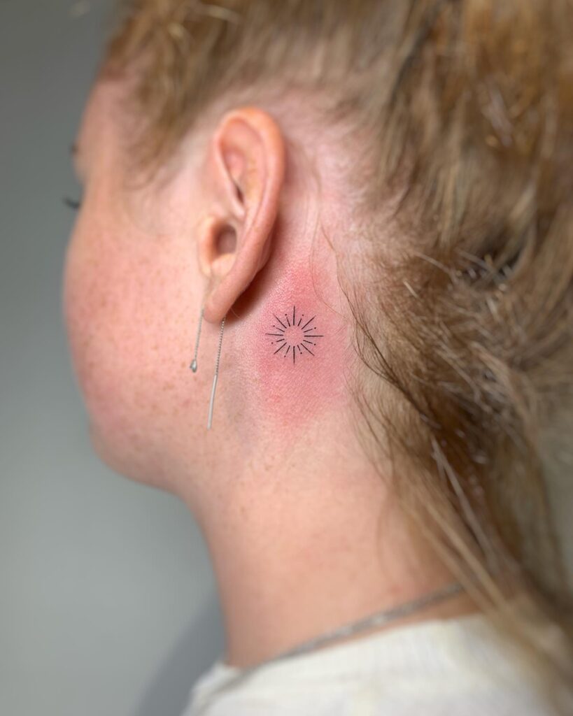 9. Minimalist Behind-the-Ear Sun Rays Tattoo