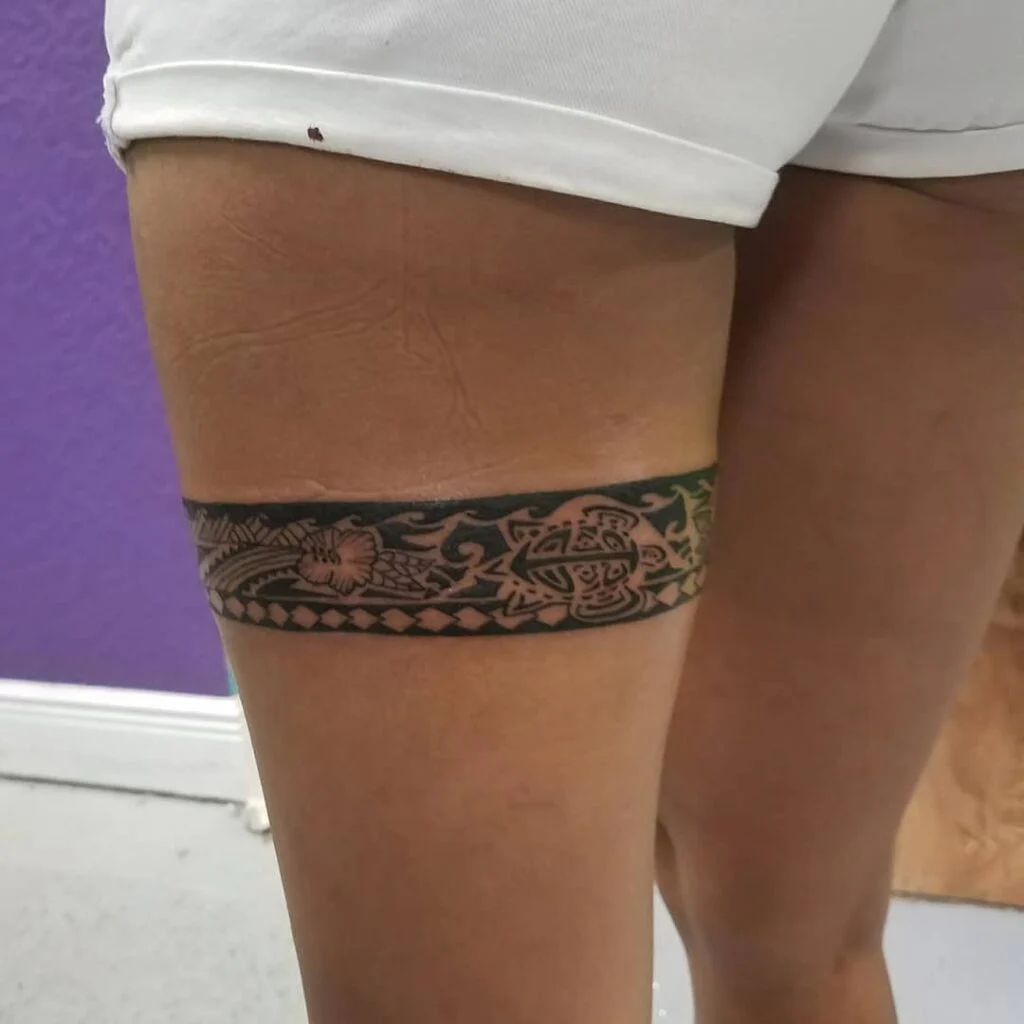 6. Tribal-Inspired Ornamental Thigh Band Tattoo