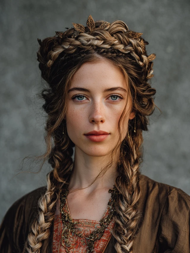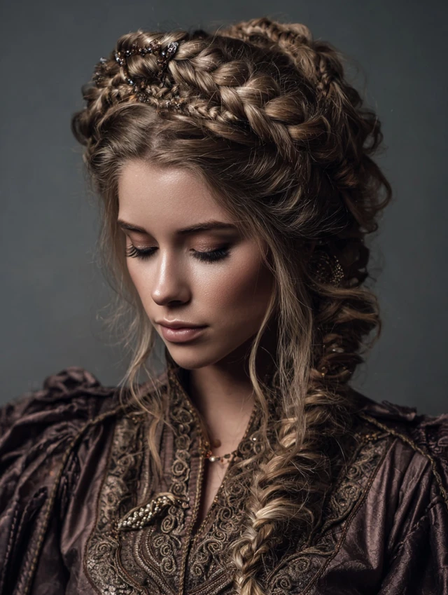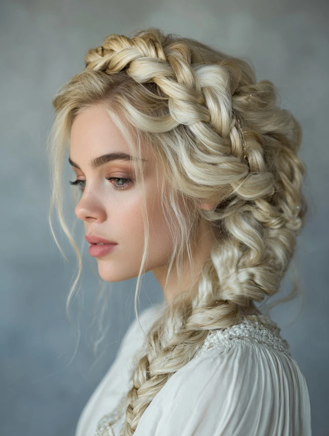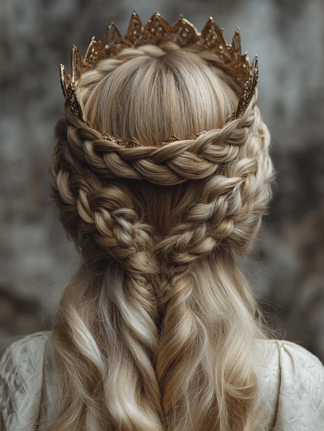 A braided crown elevates thin locs into an elegant updo that frames the face perfectly.