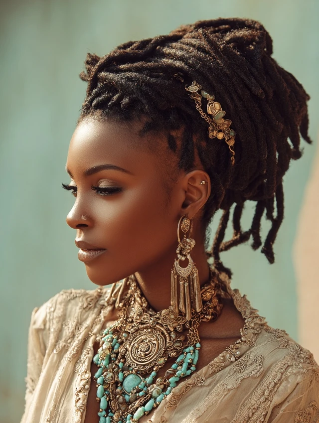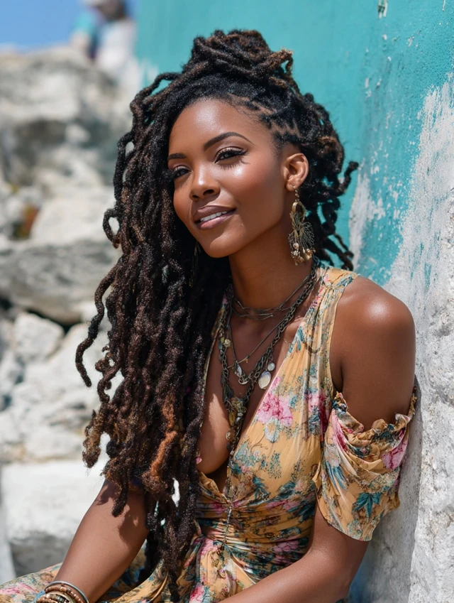 Keeping thin locs loose and accessorized highlights texture and movement naturally.