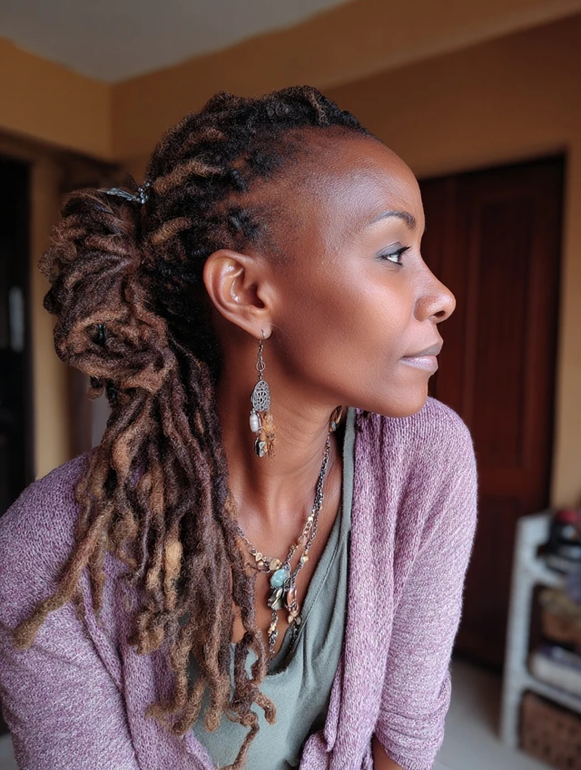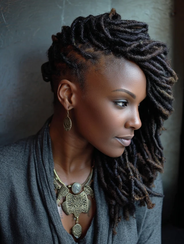 Sweeping locs to one side adds drama and showcases texture beautifully.