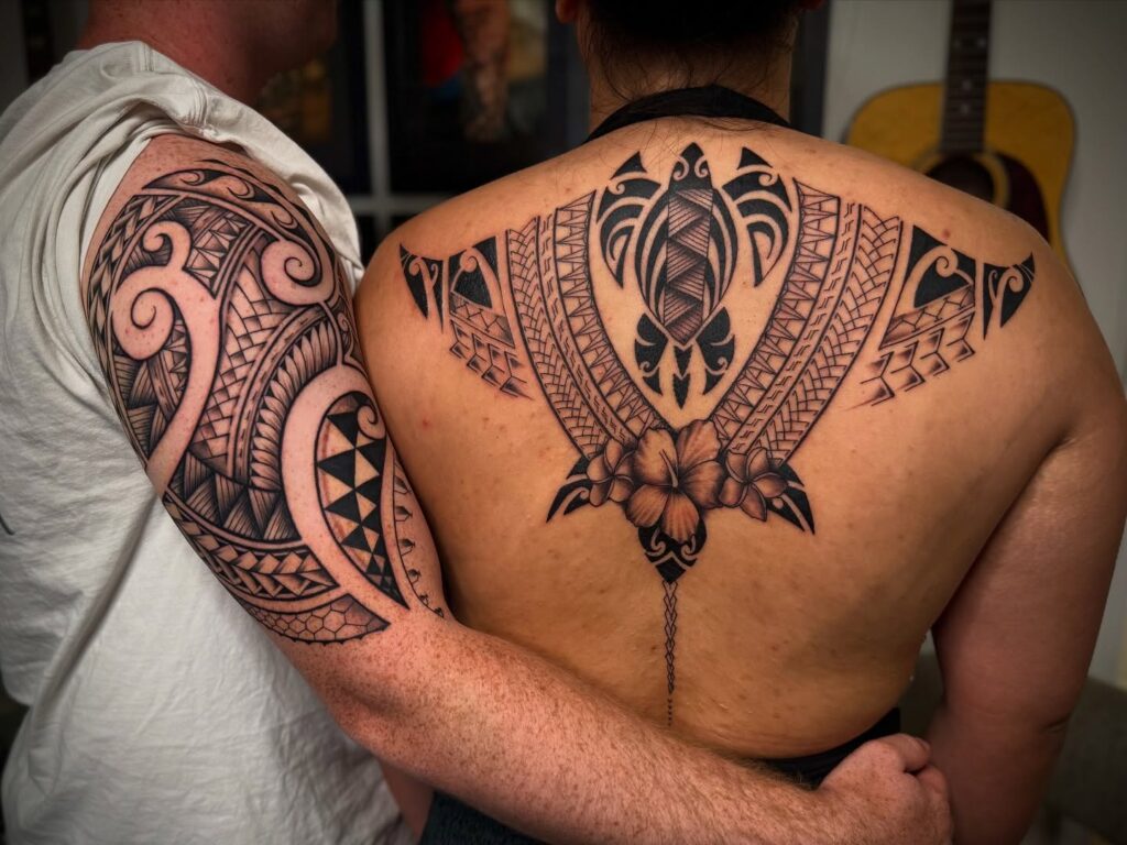 - Polynesian or Samoan tribal tattoos: Represent strength, courage, and heritage.
