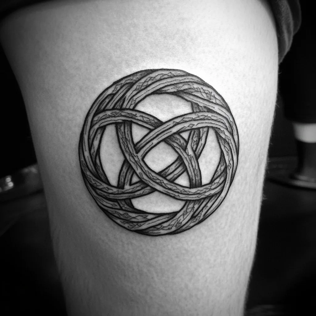 Celtic knot tattoos are timeless and deeply symbolic, making them perfect for knee tattoos. The continuous loops of the knot represent eternity, unity, and interconnectedness. These intricate, interwoven designs can circle the knee or extend in a pattern that wraps around the joint, creating an unbroken chain of unity. Celtic knots have a rich history in Celtic culture, often associated with protection, strength, and the eternal cycle of life. The circular shape of the knee complements the flowing, interconnected nature of the knot, making it a harmonious choice for anyone seeking a meaningful and visually striking tattoo.