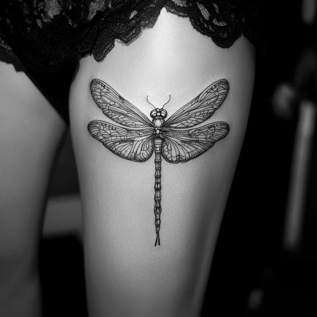 A delicate dragonfly tattoo wrapping around the knee offers an elegant and symbolic design. The dragonfly is known for its connection to transformation, adaptability, and lightness of being. Its wings, often shown in intricate detail, can extend across the knee, creating an airy, flowing look. As the tattoo mimics the natural flow of the knee joint, it embodies grace and movement. Dragonfly tattoos also symbolize living in the moment and embracing change. For those seeking a design that reflects both beauty and meaning, a dragonfly on the knee can be a reminder of personal growth and the beauty of transformation.