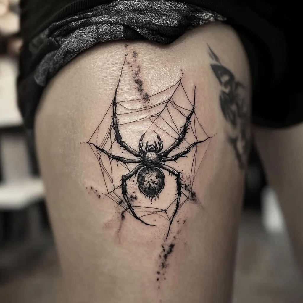 A spider web tattoo wrapping around the knee adds an element of mystery and edginess to the body. The web’s radial design mirrors the knee joint, creating a balanced yet captivating look. This tattoo can symbolize protection, a fresh start, or even strength in the face of challenges. The web’s structure offers many creative possibilities for customization, with some opting for fine lines while others prefer a bolder, thicker web. Spider web tattoos are often associated with gothic and dark themes, but they can also be interpreted as a symbol of growth or personal defense, making it a versatile option.
