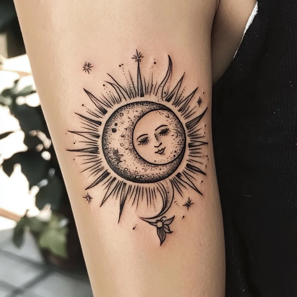 The sun and moon tattoo design on the knee symbolizes balance, duality, and the cyclical nature of life. This combination of light and dark elements works beautifully on the knee, with the sun’s rays extending outward and the moon resting at the center of the joint. The design can represent opposing forces that exist in harmony, such as day and night or masculine and feminine energies. This tattoo also carries a spiritual meaning for many, representing the balance between the conscious and unconscious mind. The knee placement is perfect for showcasing the harmonious relationship between these two celestial bodies.