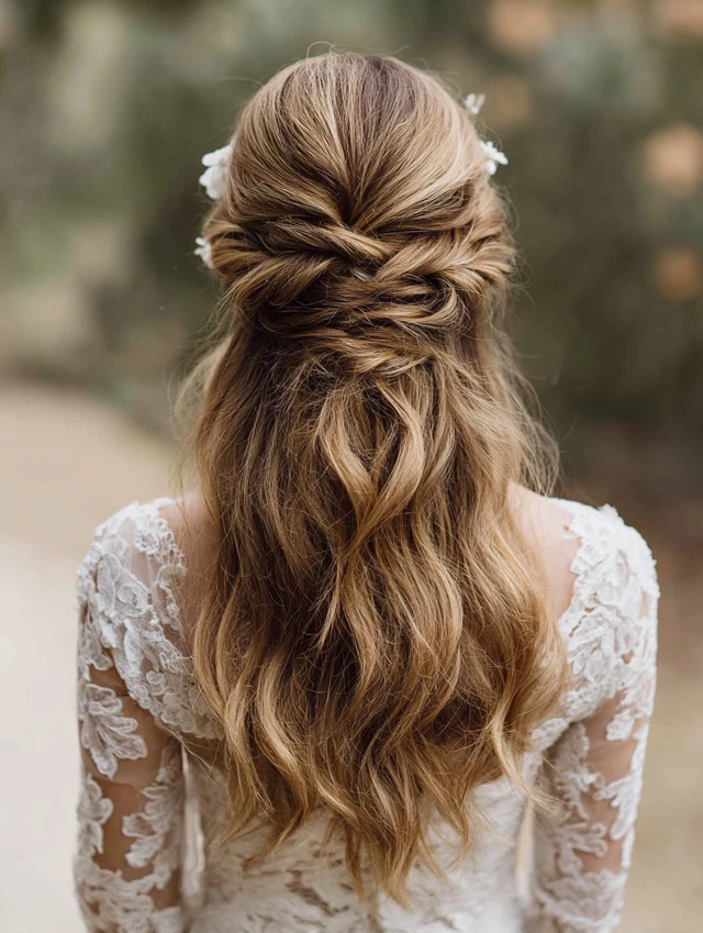Why It Works: Effortless and natural — perfect for outdoor or beach weddings.