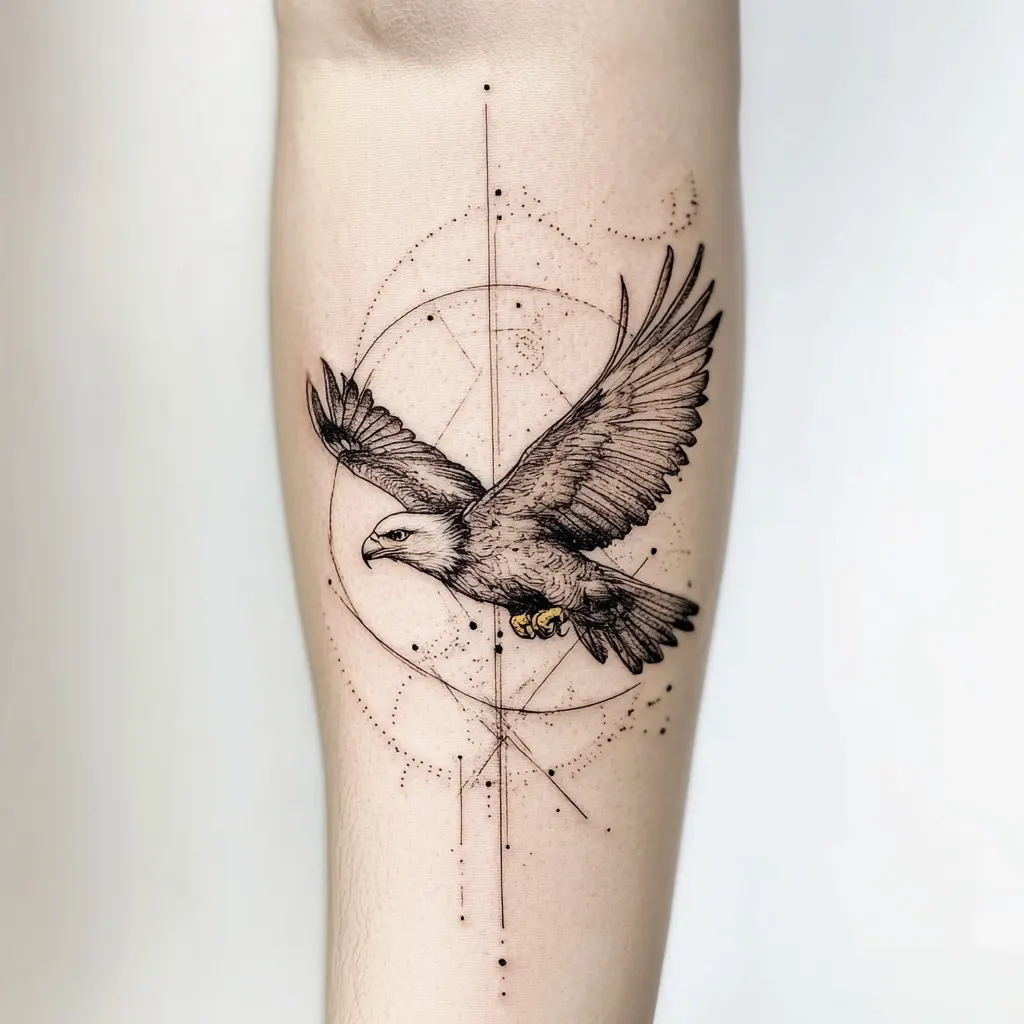 1. Eagle in Flight Tattoo An eagle in flight tattoo embodies freedom, vision, and strength. Known for their sharp vision and ability to soar high, eagles are often seen as symbols of independence and ambition. This design can be done in a highly detailed realistic style or a bold black silhouette, with wings spread wide to emphasize movement and power. Some incorporate elements like the sun, clouds, or mountains to add depth to the piece. This tattoo works well on the upper back, shoulder, or forearm, creating a dynamic and striking statement of resilience and determination.
